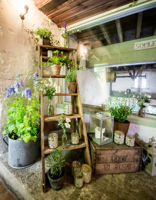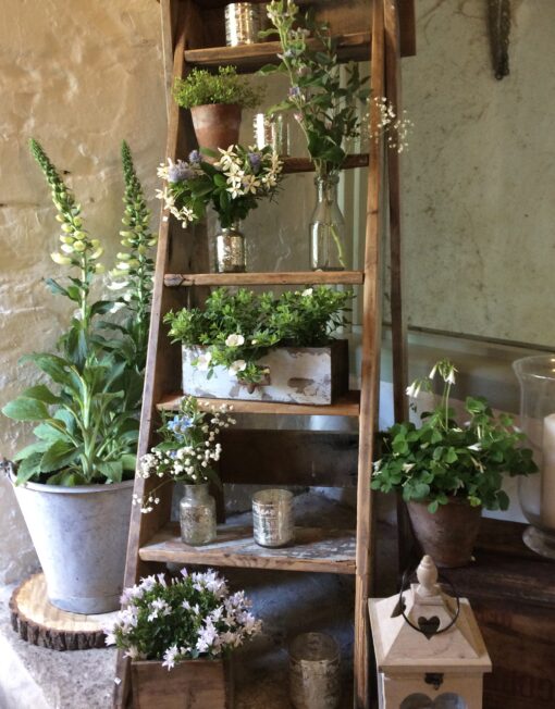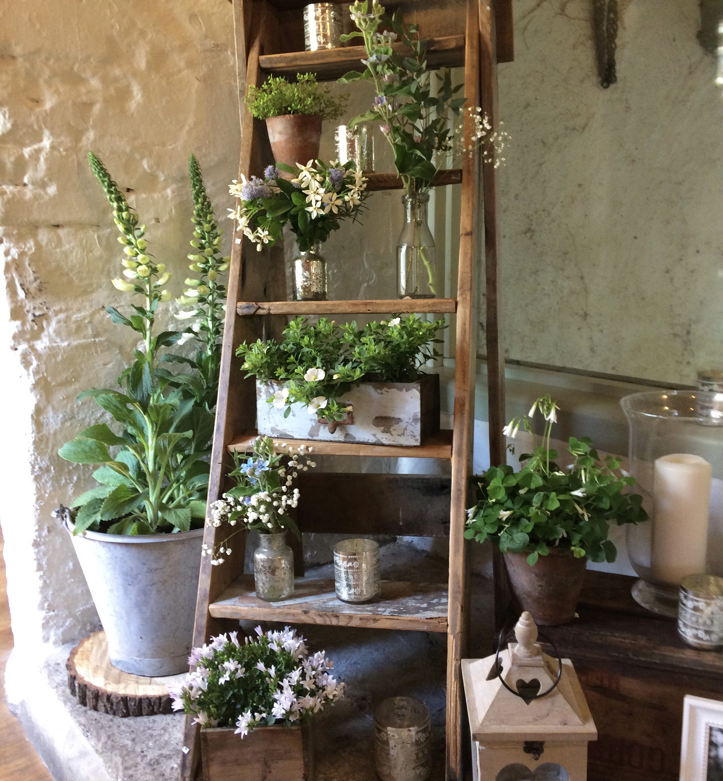 - 2-4 potted seasonal displays – such as a wooden crate with paper whites growing in or vintage bucket with violas.